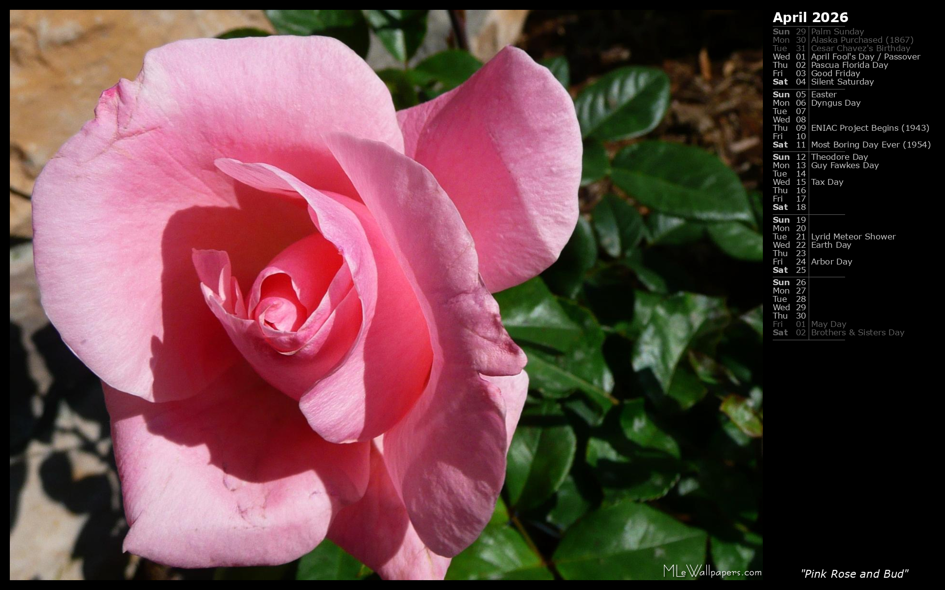 I've started my gardens at my new house, and I was pleased with the way the sunlight hit this rose. This widescreen wallpaper shows both a beautiful, blooming rose and a bud that will bloom soon.