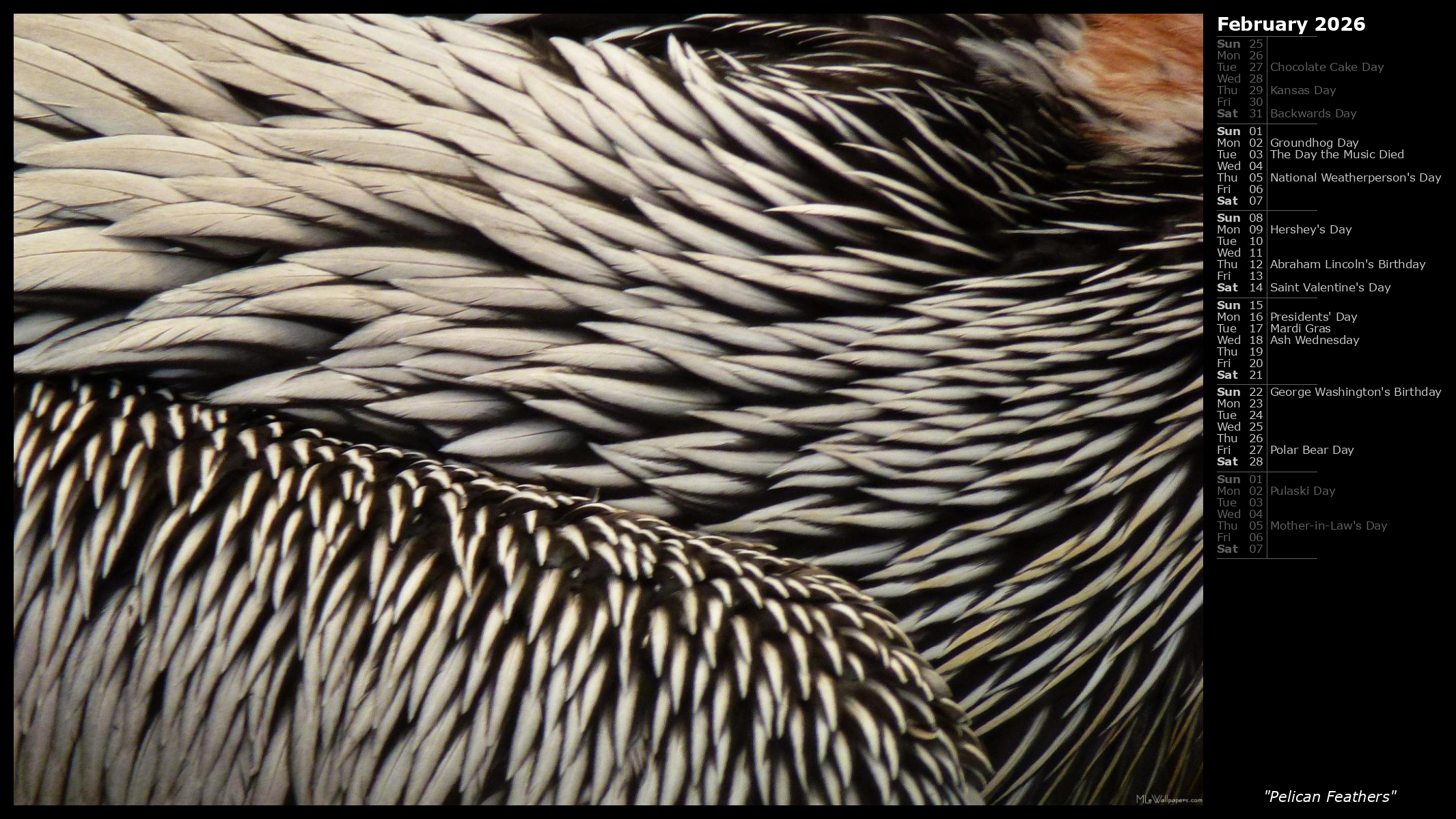 16:10 Widescreen February Calendar